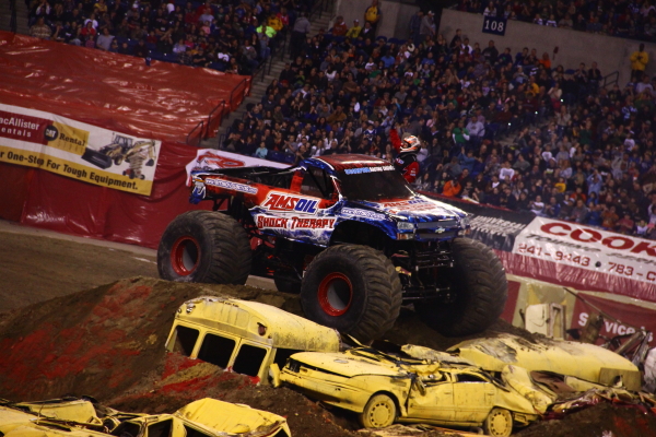 Lineup: Amsoil Shock Therapy (Jon Zimmer), Backdraft (Jeremy Slifko), Captain America (Chad Fortune), El Toro Loco (Becky McDonough), Eradicator (Andy Slifko), Excaliber (Mike Barnes), Grave Digger (Chad Tingler), Grinder (John Seasock), Incinerator (Ryan Rice), Iron Man (Scott Buetow), Lucas Oil Crusader (Linsey Weenk), Maximum Destruction (Tom Meents), Monster Mutt Rottweiler (Charles Benns), Spiderman (Bari Musawwir)
